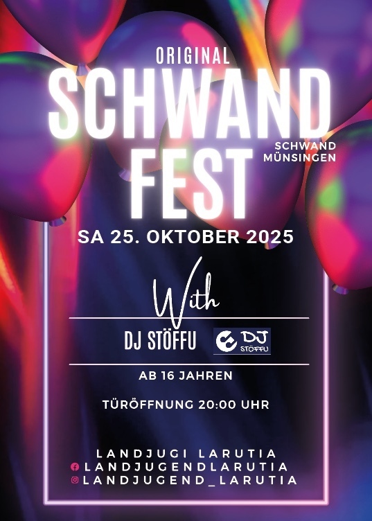 Am Samstag, 25. Oktober 2025, findet unser legendäres Original Schwandfest statt.
