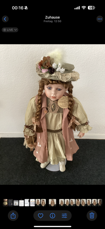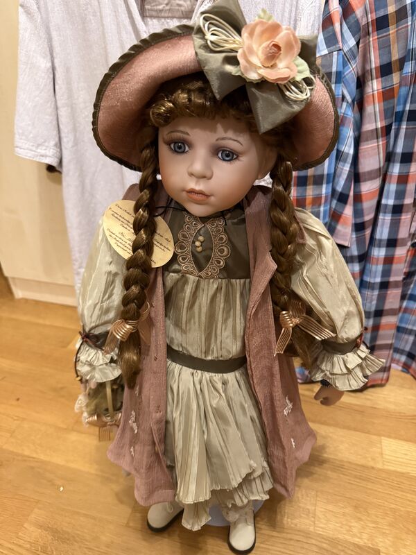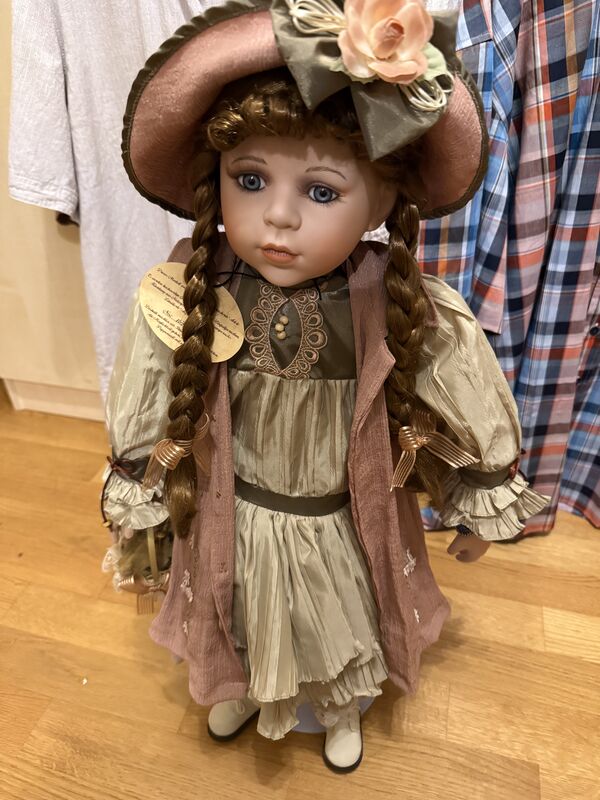 Puppe mit Zertifikat. 70 cm hoch mit Ständer