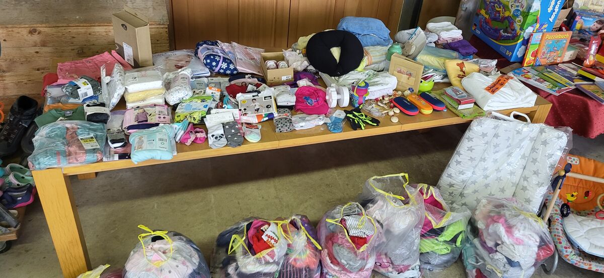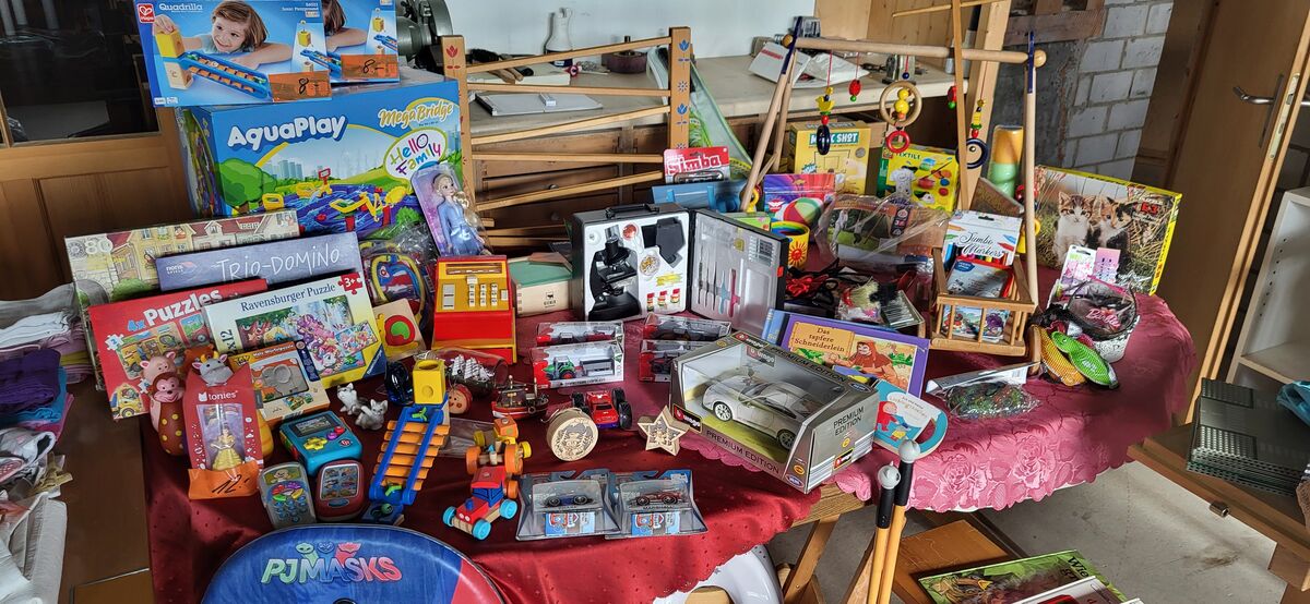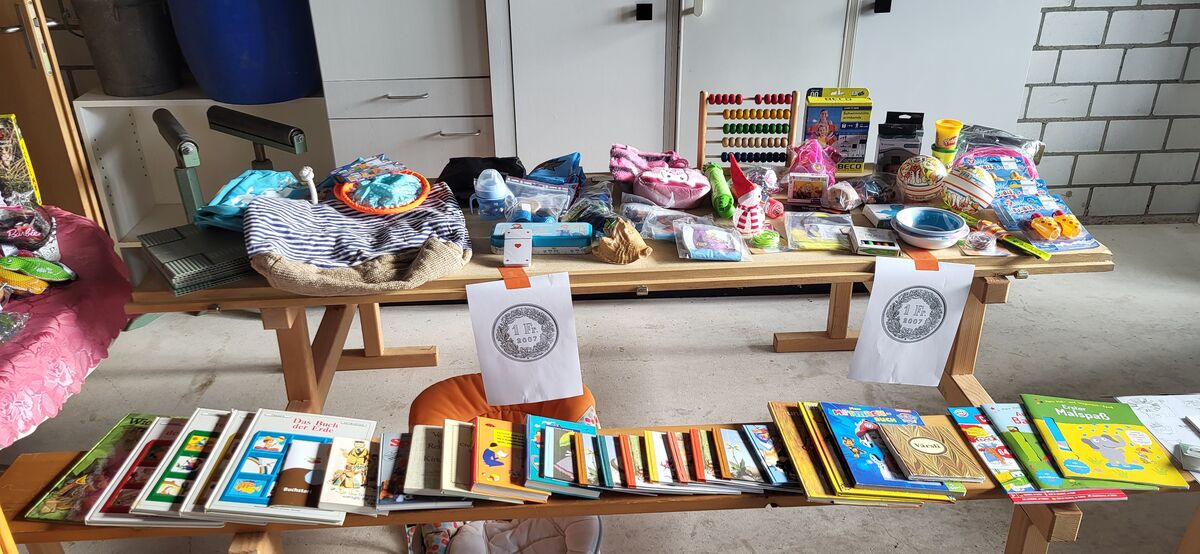 Het viu Chindersachä, vor auem Mitli 56 bis öppä 116, Schueh 20 - 29. Spiuzüg, Chuchisachä, Stoubsuger, Biuder, Möbeli, Wärchzüg, äs grosses Velo (60 cm Rahmä), Schüttelitisch und tuusig angeri Sachä! Ok, isch o vo 4 Hushautigä... 🙈
