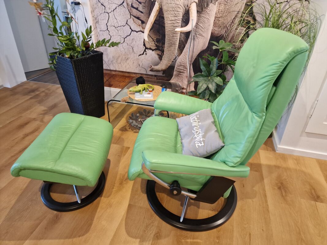Neuwertiger (2 jähriger) Echtleder Stresslesssessel inkl. Hocker zu verkaufen. Grösse M
