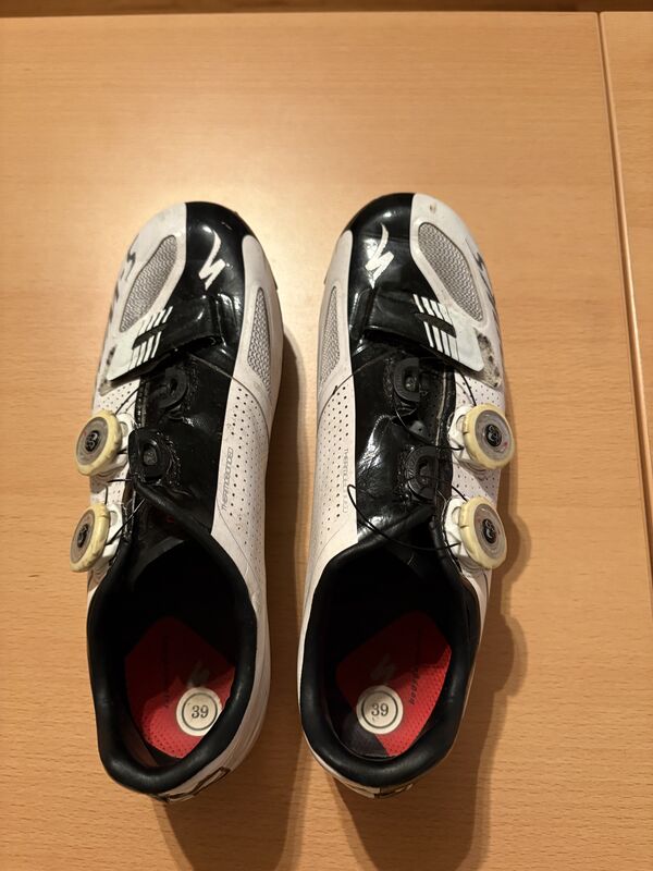 Marke Specialized, mit Schuhplatten (siehe Foto). Wegen einer Arthrose kann ich diese harten Schuhe leider nicht mehr tragen, sie sind aber noch in einem ausgezeichneten Zustand. Müssen abgeholt werden.