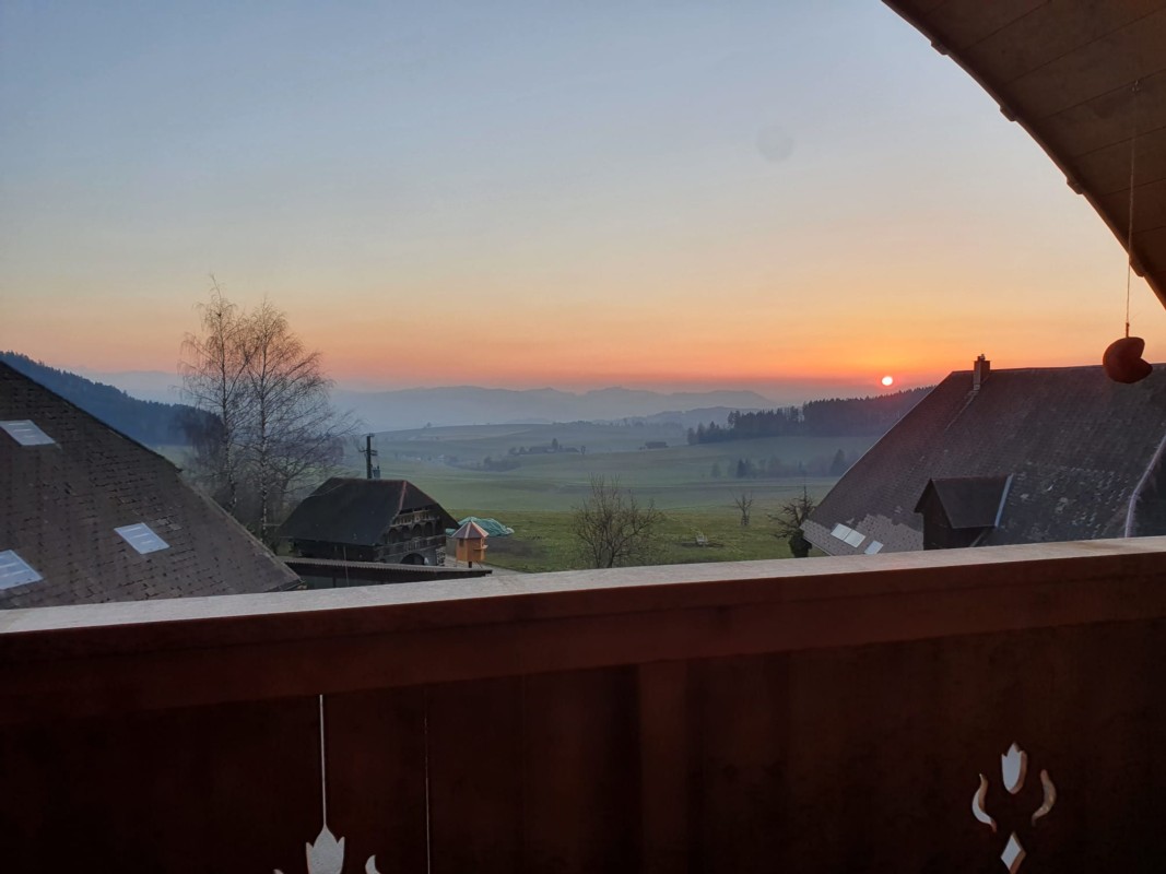 Die grosszügig bemessene Dachwohnung hat einen sonnigen Balkon und eine wunderschöne Aussicht. Sie liegt in einem ruhiggelegenen Bauernweiler oberhalb Utzigen etwa 300 Meter unterhalb der Mänziwilegg. Die Küche liegt vor einem Lukarnenfenster und lädt mit ihrer praktischen L-Form zum kochen ein. Die Zimmer sind hell mit eingebauten Dachfenstern. Im Badezimmer befindet sich eine eigene Waschmaschine, sowie Wäschetrockner. Ein gedeckter Parkplatz ist vorhanden und ein Kellerabteil steht ihnen zur Verfügung. Katzen sind erlaubt. Das Gebäude wurde im Jahr 2019 neu gebaut.