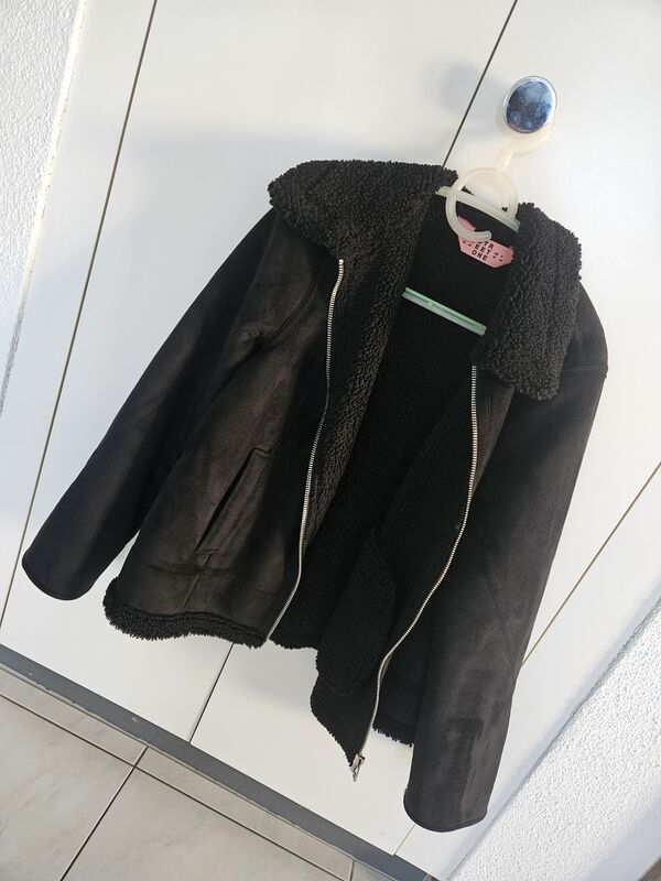 Ich verkaufe eine stylische schwarze Bikerjacke in Wildleder-Optik mit weichem Teddyfell-Innenfutter. Die Jacke ist angenehm warm und perfekt für Herbst und Winter geeignet. Details: Farbe: Schwarz Mit Reissverschluss Kuscheliges Teddyfell innen und am Kragen Lässiger Oversize-/Bikerstil Seitliche Taschen Zustand: Neu, nie getragen! Die Jacke lässt sich super zu Jeans, Kleidern oder Boots kombinieren und ist ein echter Hingucker. Bei Interesse gerne melden 😊