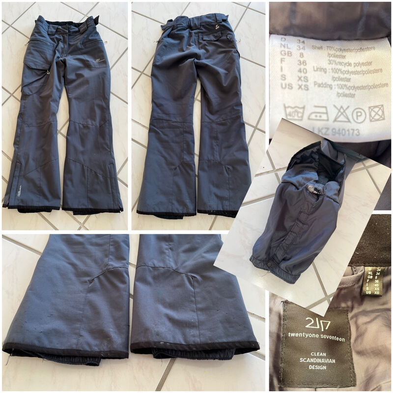 Skihose Damen Grösse 34 (twentyone seventeen), getragen, normale Gebrauchsspuren unten von Skischuhen, Innenliegende Naht bei Schneefang beim Hosenbein leicht aufgerissen, ca. 2 cm, trotzdem dicht, guter Zustand, siehe Bilder
