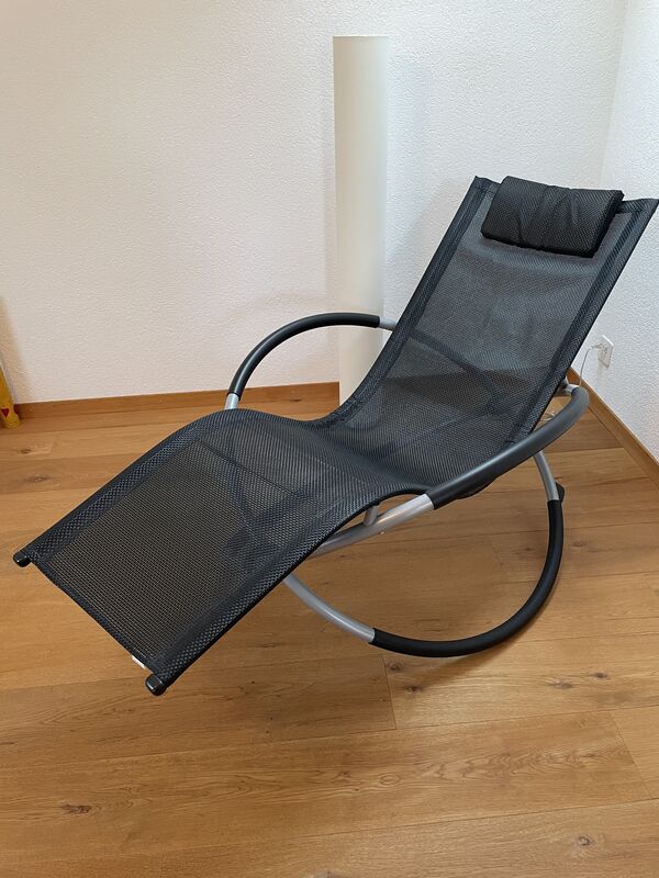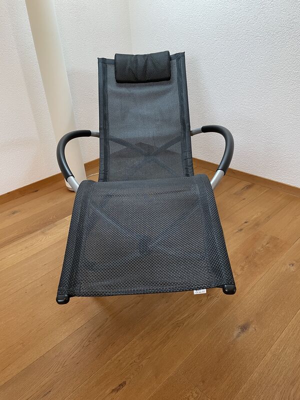 guterhaltene Sonnenliege Rocking Chair in schwarz. Die Sonnenliege wurde nur im Innenraum wenig benutzt.