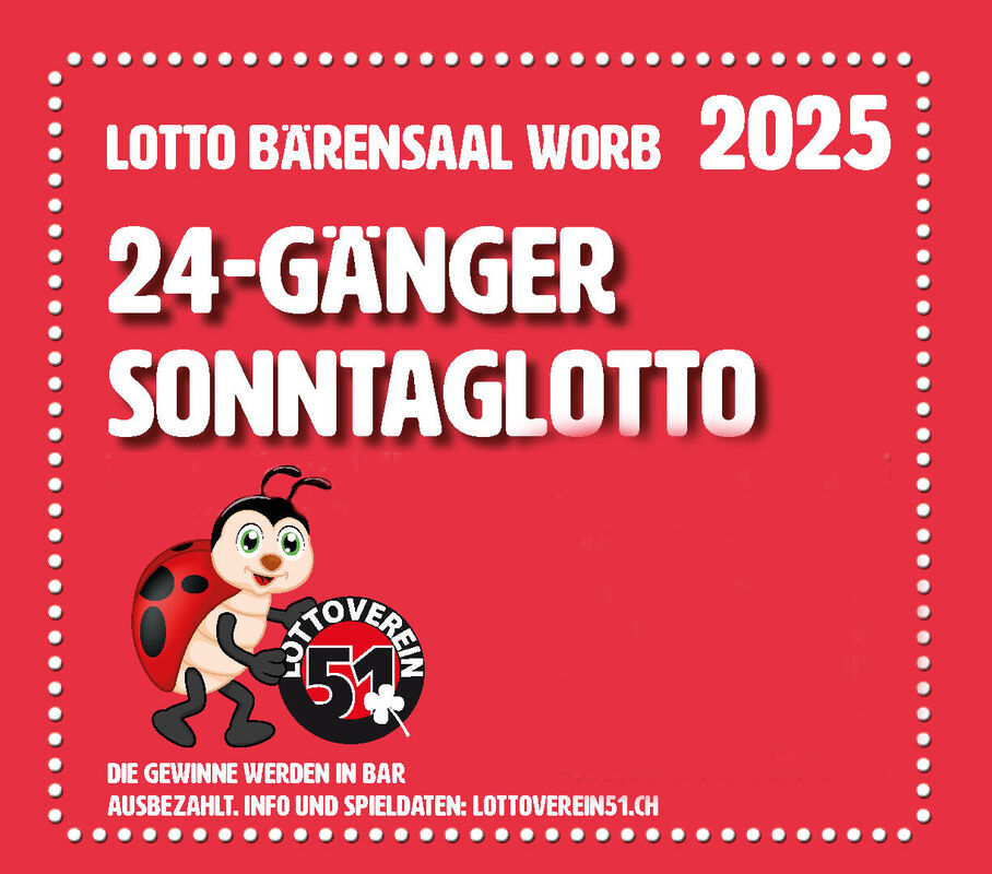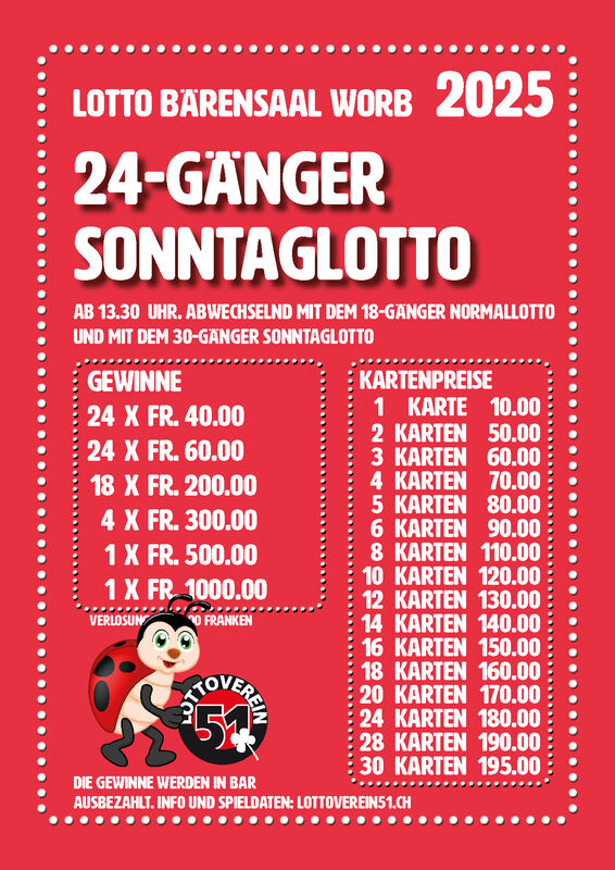 Aktueller Jackpot unter www.lottoverein51.ch