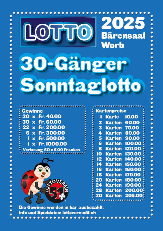 Aktueller Jackpot unter www.lottoverein51.ch