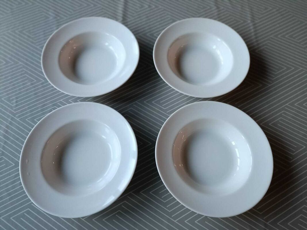 4 schöne, weisse Spaghetti- oder Suppenteller Ø ca. 30cm. Die Teller sind wenig gebraucht und sind in tadellosem Zustand. Ohne irgenwelche Beschädigungen oder Kratzer.