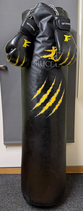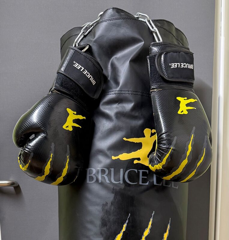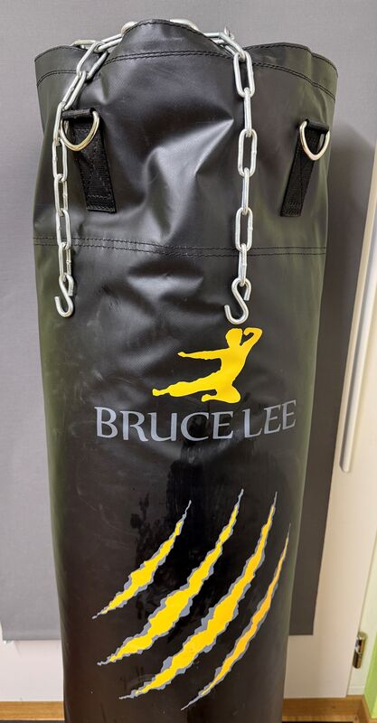 Stabiler Punch Bag Bruce Lee inklusive Aufhängesystem für Deckenbefestigung.