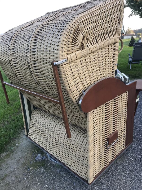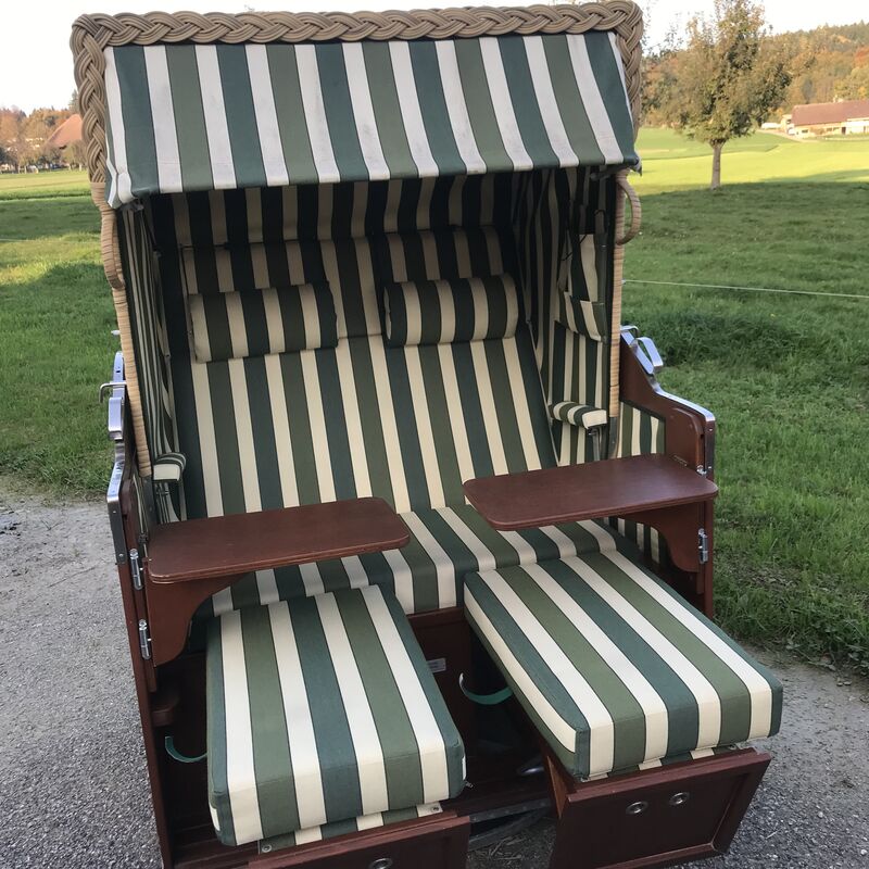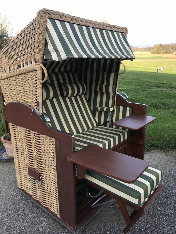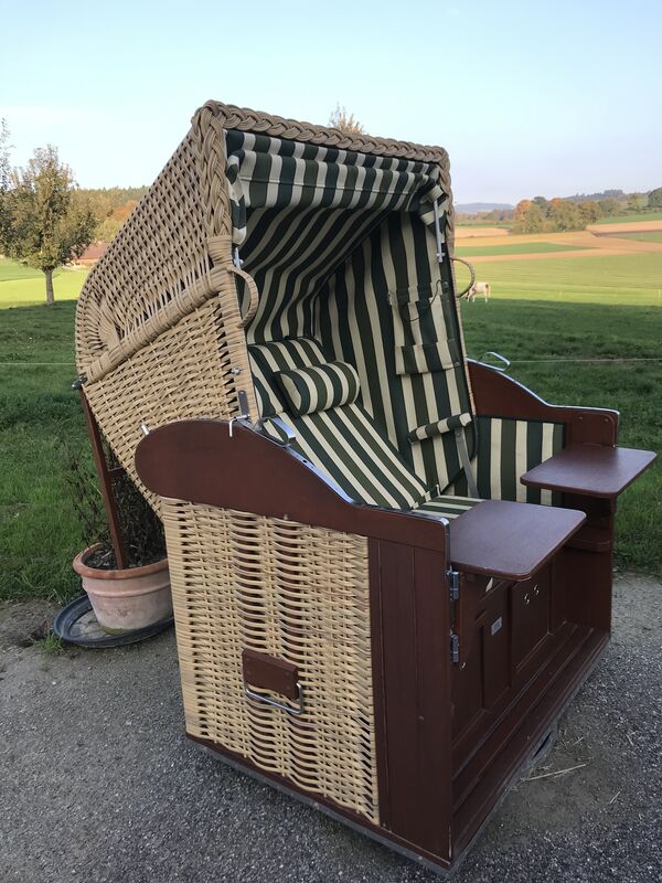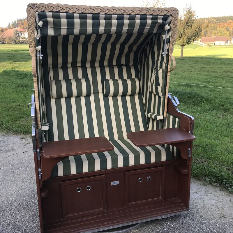 Schöner Strandkorb mit 2 schwenkbaren Bistro-Tischli