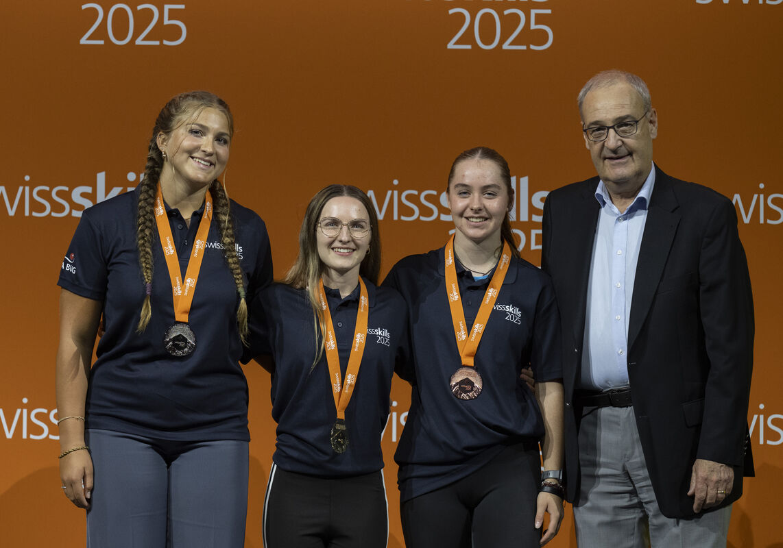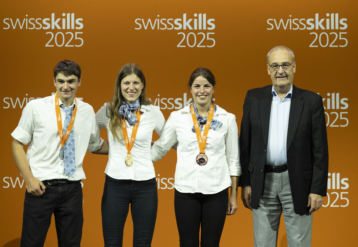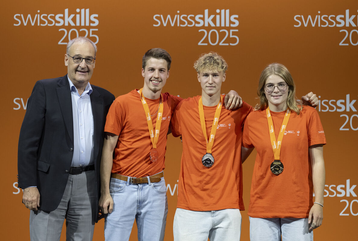 Bundesrat Guy Parmelin liess es sich nicht nehmen, allen Medaillengewinnerinnen und -gewinnern persönlich zu gratulieren. Der Wirtschaftsminister, der selbst eine Lehre als Landwirt absolviert hat, würdigte die Leistungen: «Leidenschaft, Können, Berufsstolz – das ist das, was uns in den letzten Tagen bewegt hat. Ihre Fähigkeiten sind ein Versprechen für die Zukunft.»