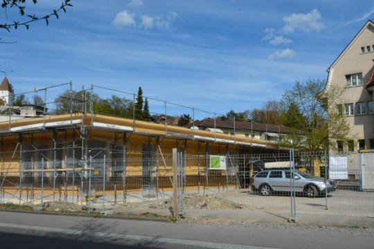 Fertig ist die Tagesschule damit natürlich noch nicht. Aktuell sind die Elektriker und Sanitäre an der Arbeit. Wenn alle Leitungen verlegt sind, werden die Innenwände isoliert und verkleidet, dann die Heizung und der Unterlagsboden eingebaut. Danach kommen Fassadenverkleidung und Bedachung sowie der Innenausbau, dazu gehören Schreinerarbeiten wie die Küche, die Garderobe sowie Türen und Fenster.