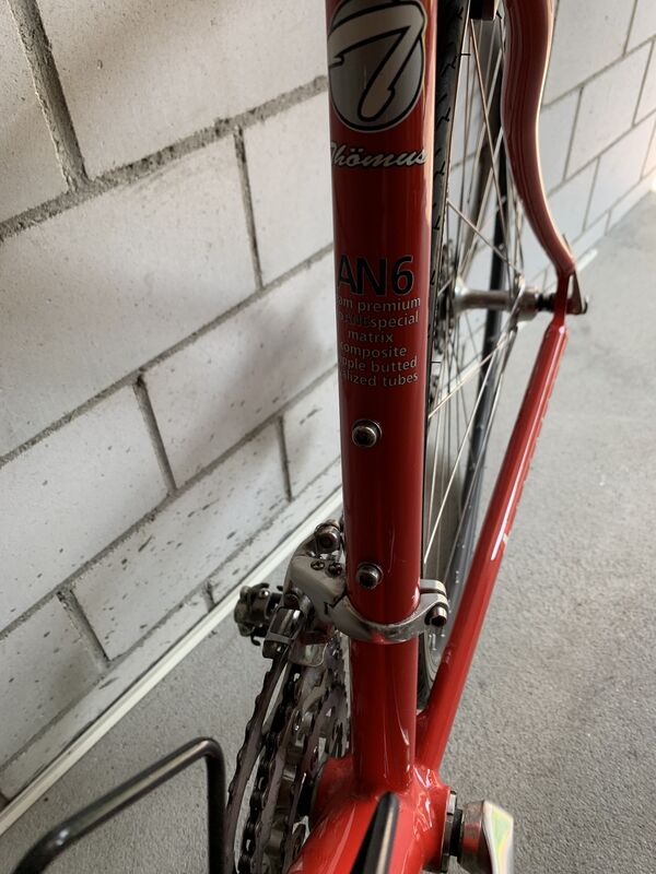 Hochwertiges, makelloses Thömus Sliker Team Rennrad mit stabilem AN6 Aluminiumrahmen und kompletter Shimano Ultegra Ausstattung. 21Gänge.