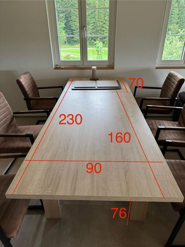 Der Tisch ist in einem guten Zustand, um 70cm ausziehbar (siehe Foto) und weist leichte Gebrauchsspuren auf. Das passende Salontischli geben wir, falls gewünscht, Gratis dazu.