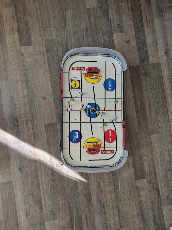 Gut erhaltener und voll funktionstüchtiger Tisch-Hockeykasten.