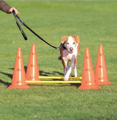 Bringen sie Abwechslung in das Leben ihres lieben Vierbeiners. Hunde mögen es beschäftigt zu werden und genau wie beim Menschen, ist es wichtig sie körperlich und auch geistig zu beschäftigen, fit zu halten und die Bindung zu stärken. Das Trixie Dog Activity Hindernissen ist ein herrliches Trainings- und Spielvergnügen für ihren Hund. Dieses Trainingsmittel dient zur Steigerung von Konzentration, Körpergefühl, Ausdauer und Koordination und sorgt dadurch, bei ihrem lieben Vierbeiner, für mehr Ausgeglichenheit und Zufriedenheit. Durch die Löcher in den Pylonen/Hütchen ist die Höhe variabel einstellbar und geben diverse Steckmöglichkeiten für Hindernis- oder Slalomaufbauten, dadurch eignen sie sich auch für (physio-) therapeutische Anwendungen, Hunde jeden Alters und jeder Grösse. Mehr Informationen für das optimale Training und Tipps und Tricks finden sie in der mitgelieferten Anleitung. Diese Trainingsvariante ist schnell auf- und abgebaut und hat auch auf einem kleinen Stück Wiese platz. Das Material ist Kunststoff und kann mit Wasser abgewaschen werden.