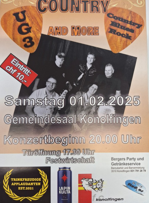 01.02.2025 Türöffnung (Festwirtschaft & Bar) 17:30 Konzertbeginn 20:00