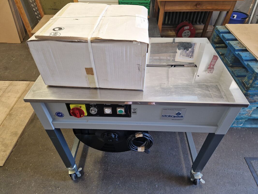 Umreifungsmaschine halbautomatisch ist wie Neu wurde selten gebraucht, gibt noch ein Zusatzband dazu.