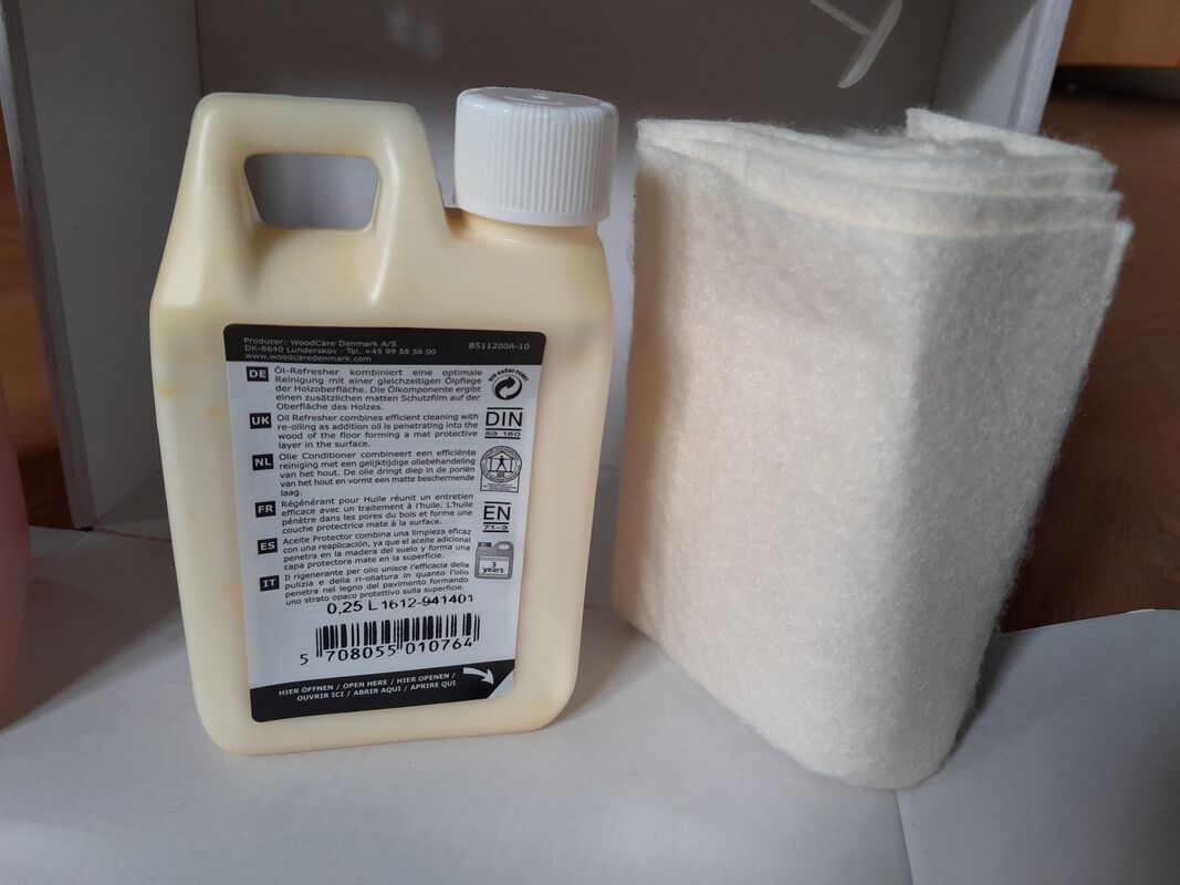 1,0 Liter Holzbodenseife, 0,25 Liter Öl-Refresh sowie eine Pflegeanleitung mit vielen Tipps