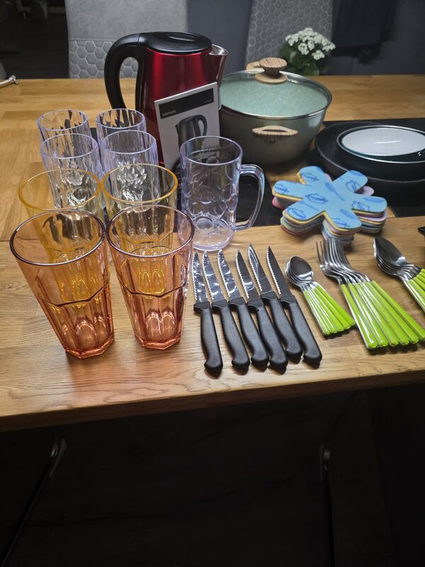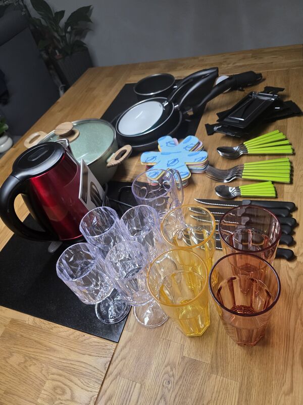 Wegen Campingaufgabe div. Geschirr, Besteck, Gläser, Tassen, Wasserkocher, und vieles mehr.