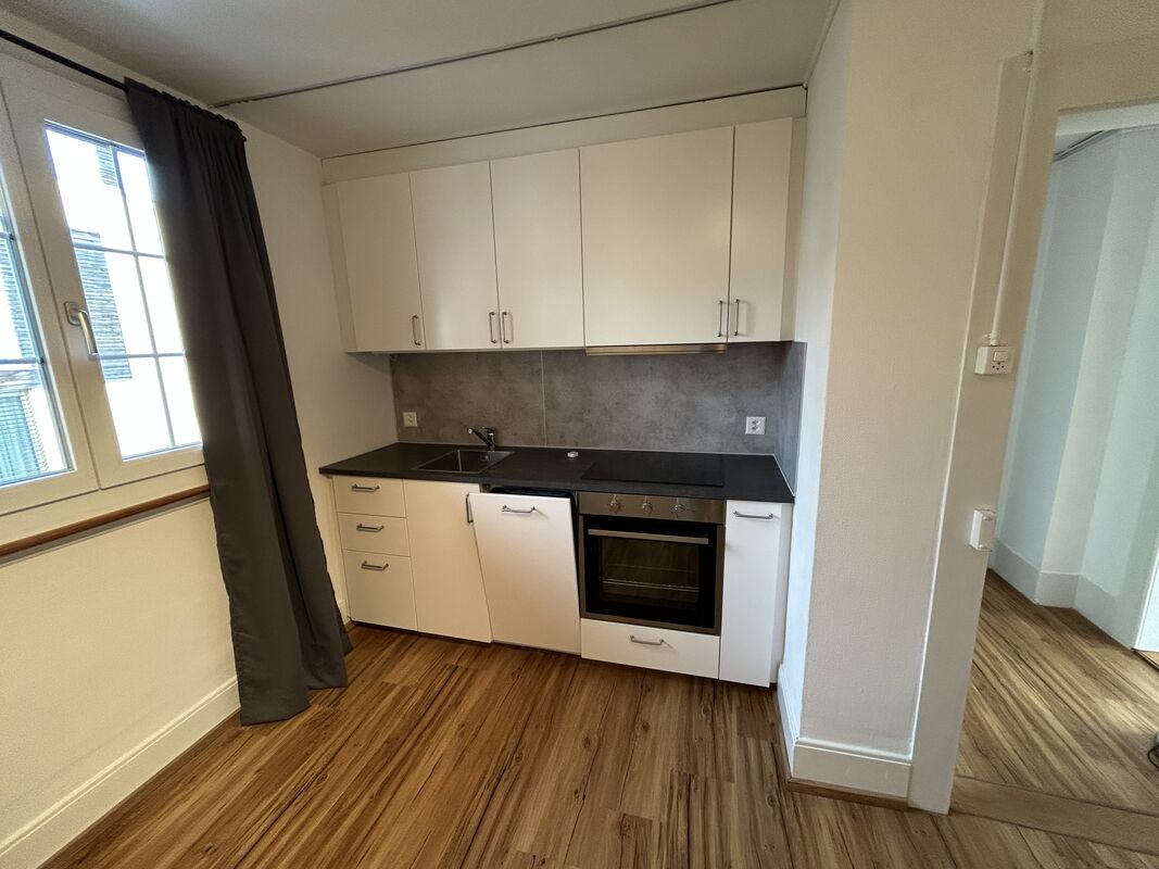 Die einfache und heimelige Wohnung wurde vor kurzem renoviert. Sie ist im ersten Stock des hundertjährigen Hauses.
