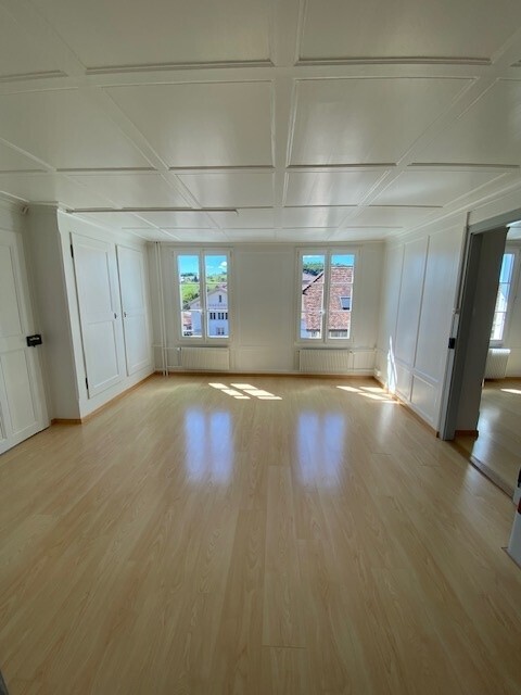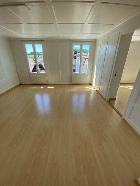Die sonnige Wohnung mit Charme befindet sich im 1. Stock eines stilvoll renovierten 3-Familienhauses (Baujahr 1860), fünf Gehminuten ab Bahnhof Worb Dorf.