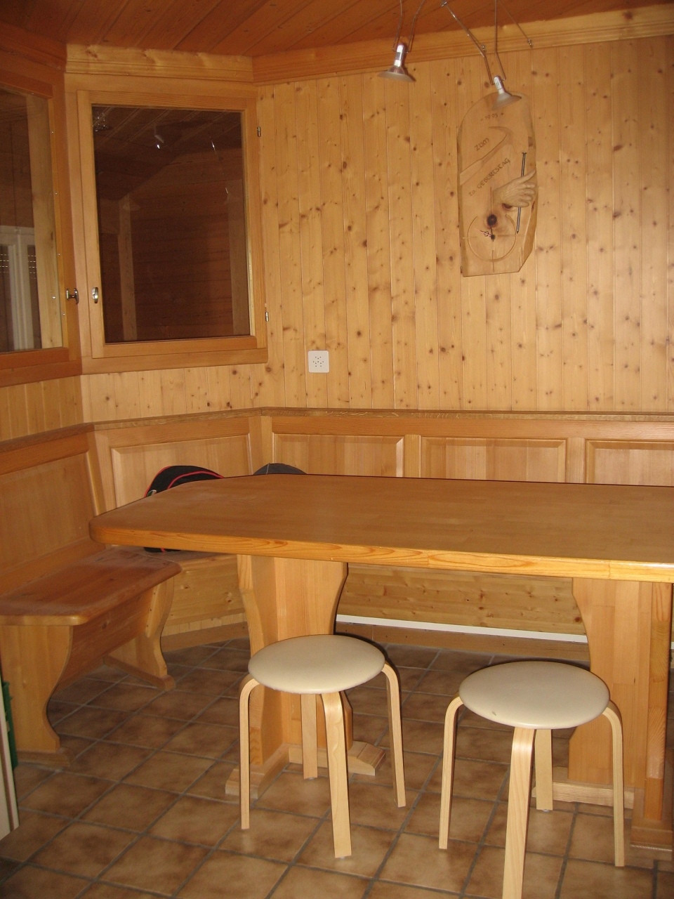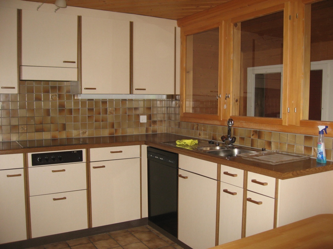 Waschmaschine, Tumbler (= Waschraum) kann mit zwei anderen Parteien benutzt werden. Gartensitzplatz zu gemeinsamen Benützung. Balkon vorhanden. Tiere noch Absprache möglich.