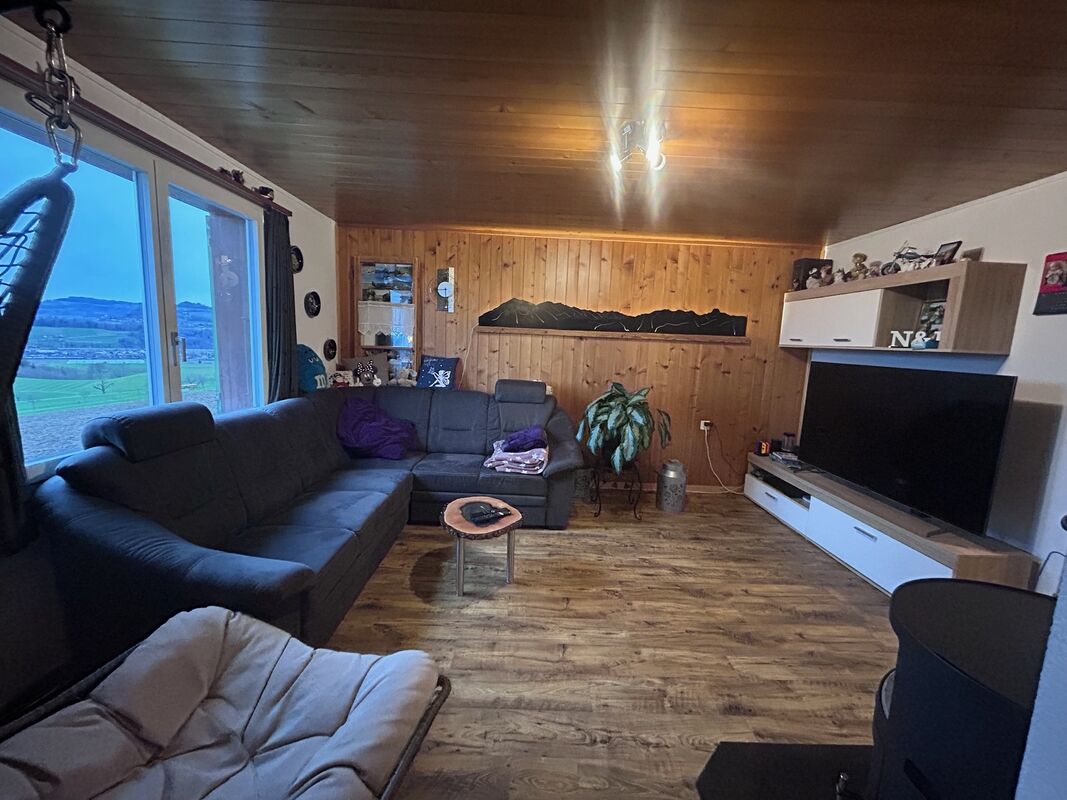 Wir vermieten per 1. Juni 2026 unsere grosse Dachwohnung an ruhiger Lage im grünen in Wichtrach mit Sicht auf die Stockhornalpenkette.