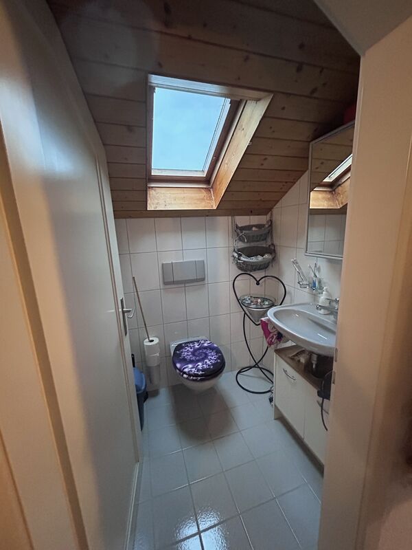 - Bad im 1 Stock mit Badewanne und WC, im Dachstock WC mit Lavabo