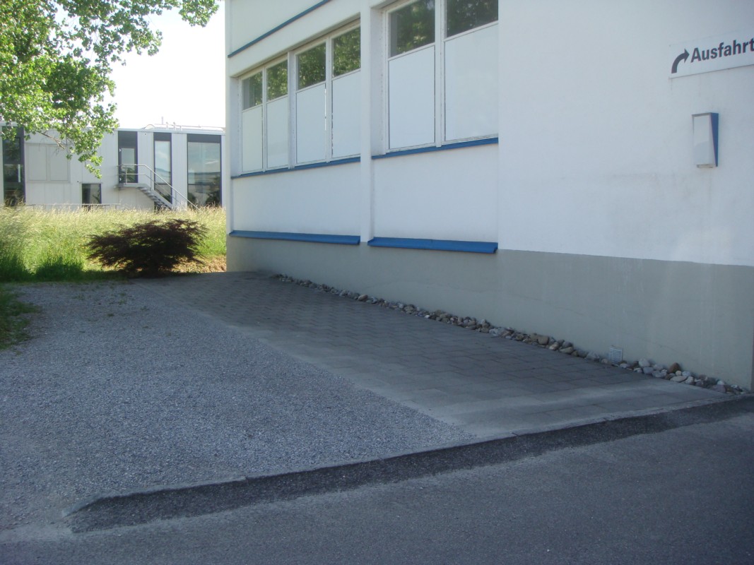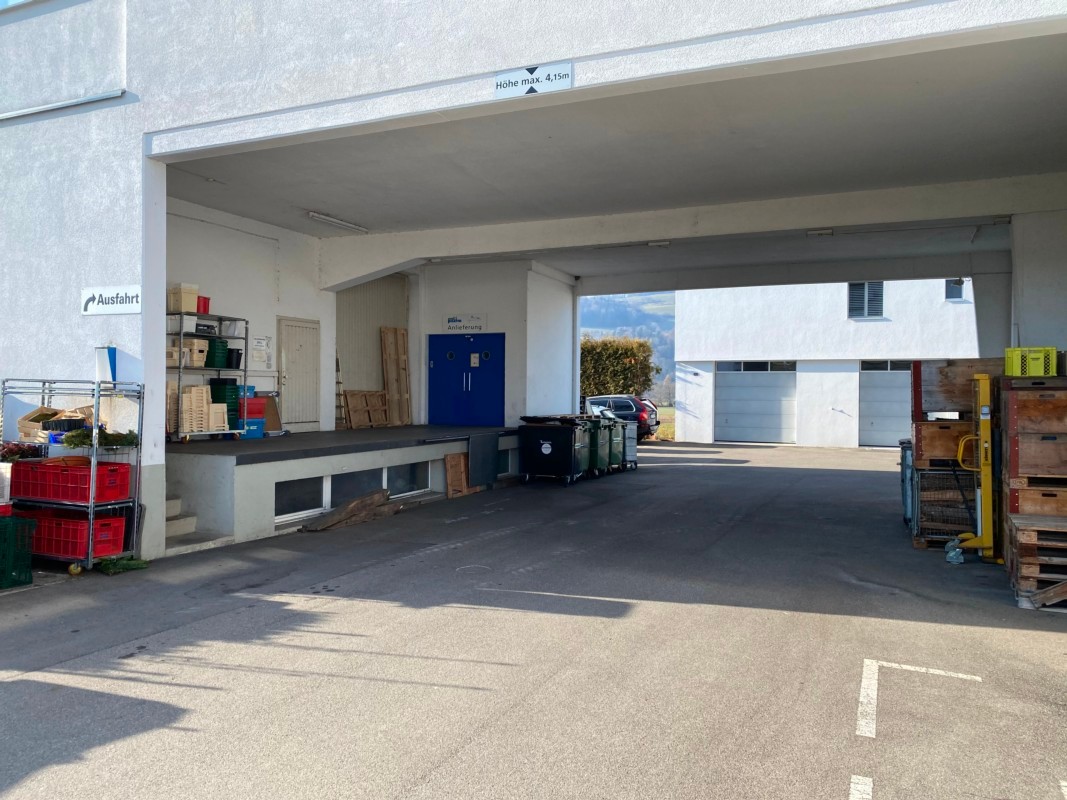 Im EG befindet sich eine gedeckte Umschlagsrampe zur Mitbenützung. Der Aussenplatz bietet Platz für 4 PW-Abstellplätze.