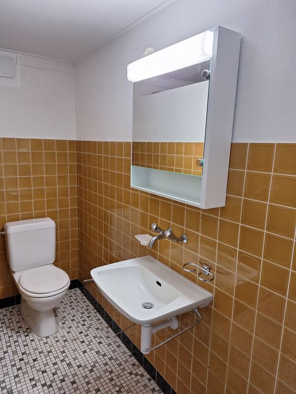 in Bauernhaus EG, teilrenoviert, Küche mit Geschirrspüler, Mikrowelle, Dusche/ WC und WC/ Badewanne, eigene Waschküche mit Waschmaschine, helle Zimmer, ungeheiztes Reduit, Keller- Gartenanteil möglich.