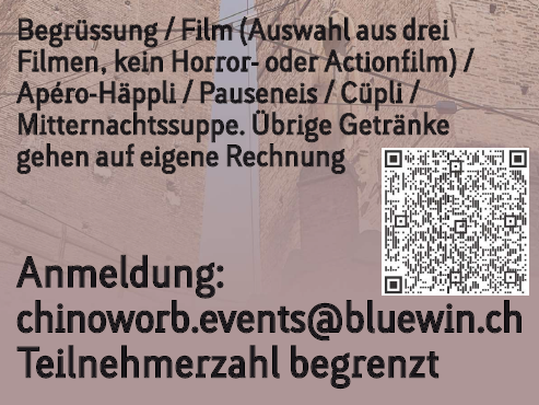 Reservationen erforderlich: chinoworb.events@bluewin.ch