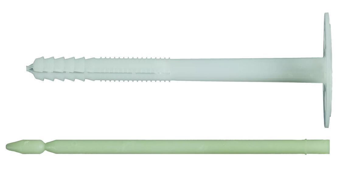 Der glasfaserverstärkte Kunststoff-Nagel (GFK-Nagel) reduziert die Transmissionswärme und verhindert Abzeichnungen an der Putzoberfläche.