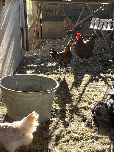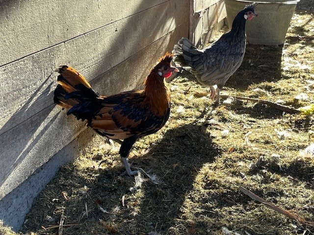 Ich verschenke einen meiner beiden schwarz-gold-beige-farbigen Appenzeller-Spitzhauben-Güggel. Sie sind durch eine Naturbrut am 20. Juli 2025 geschlüpft.