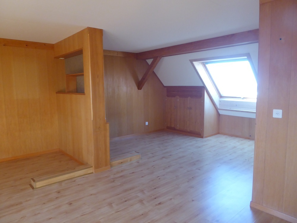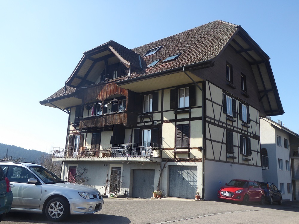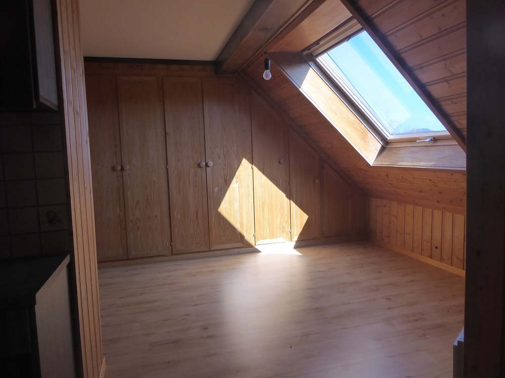 Ab sofort in Konolfingen an Nichtraucher/in (kein Balkon!) zu vermieten: Originelle, geräumige, sonnige 1,5-Zimmer-Dachwohnung im 4.Stock, kein Lift, Dachfenster mit Fernsicht, keine Haustiere. Bahnhof, Coop und Post sind zu Fuss in 5 Minuten erreichbar. Zur Wohnung mit vielen Einbauschränken und einer Badewanne gehören ein unbeheiztes Nebenzimmerchen, eine kleine Dachkammer, ein Estrich- und ein Kellerabteil. Die Wohnung hat einen eigenen Boiler und eine unabhängige Heizung. Auf Wunsch können eine Garage (70.-) und/oder ein Parkplatz (30.-) dazu gemietet werden.