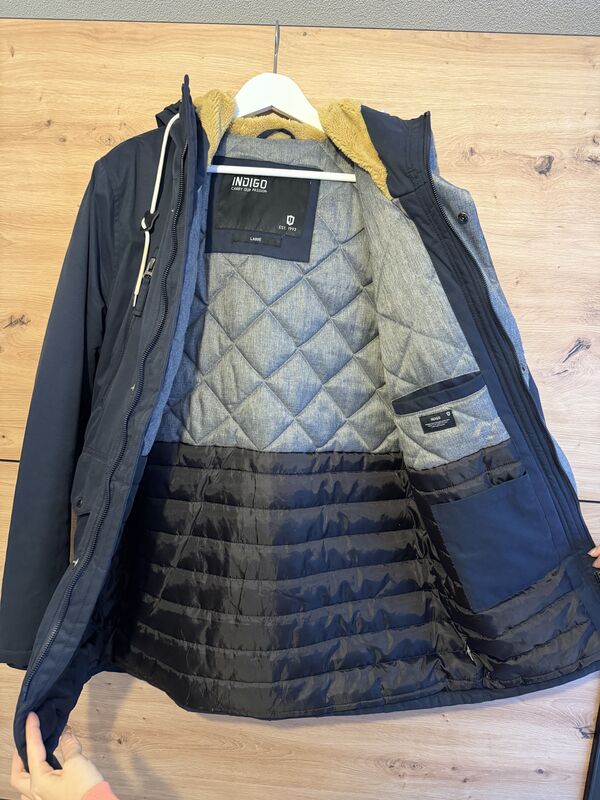 blaue indigo winterjacke gratis abzugeben, grösse large, muss in boll abgeholt werden. bei interesse bitte melden.